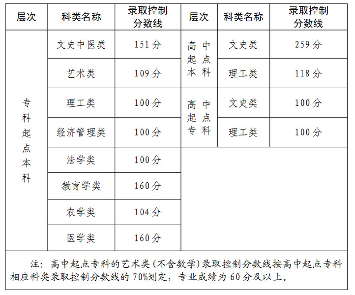 经省教育厅专题会议研究,确定2025年福建省成人高校招生各类录取控制分数线如下: